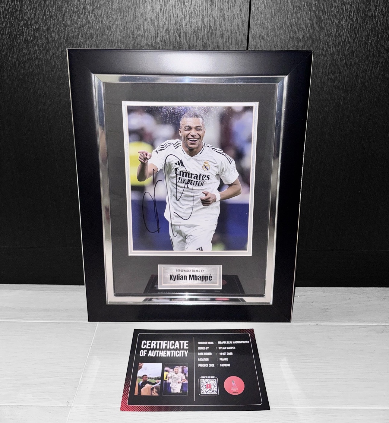 โปสเตอร์ Kylian Mbappé Real Madrid เข้ากรอบ พร้อมลายเซ็นสด