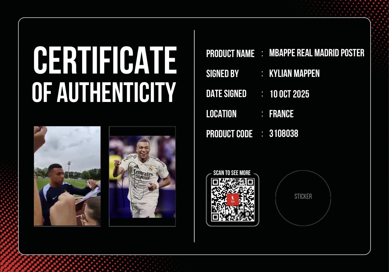 Poster Kylian Mbappé Real Madrid พร้อมลายเซ็นสด