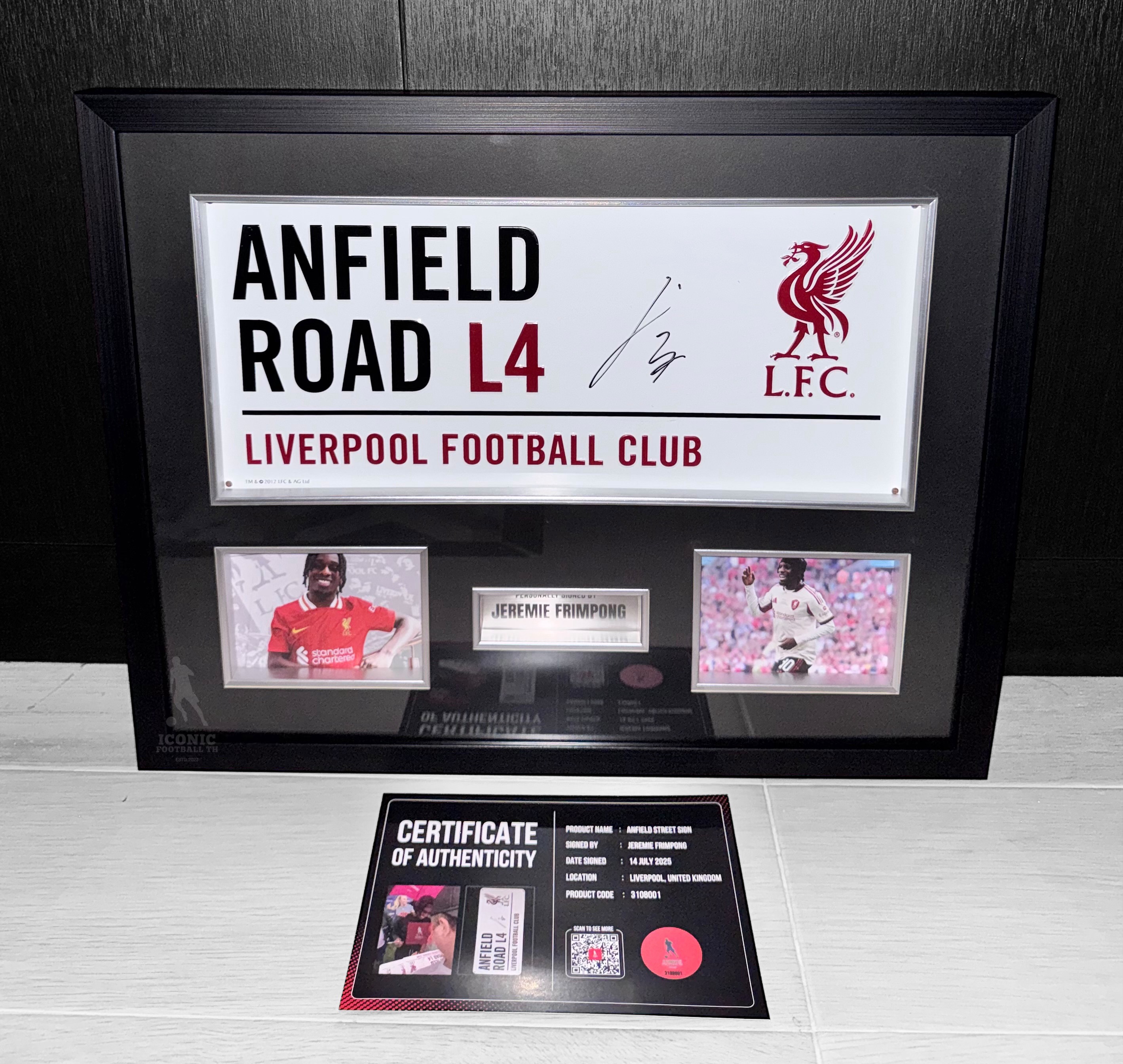 ป้าย Anfield Street Sign เข้ากรอบ พร้อมลายเซ็นสด Jeremie Frimpong ✍
