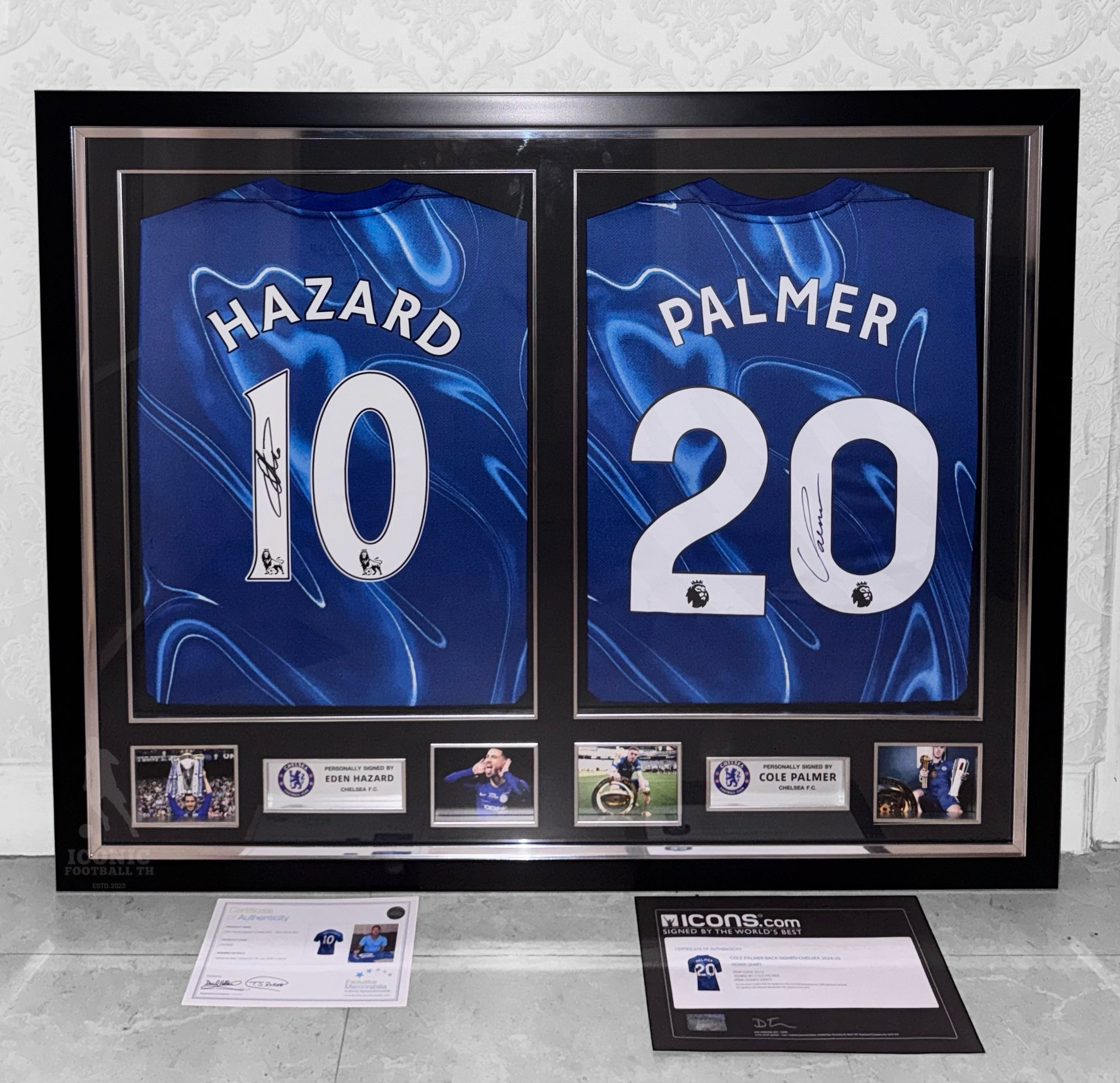 เสื้อ Chelsea 24/25 พร้อม ลายเซ็นสด Eden Hazard+Cole Palmer ใบเซอร์ Exclusive Memorabilia + Icons.com เข้ากรอบคู่ Premium