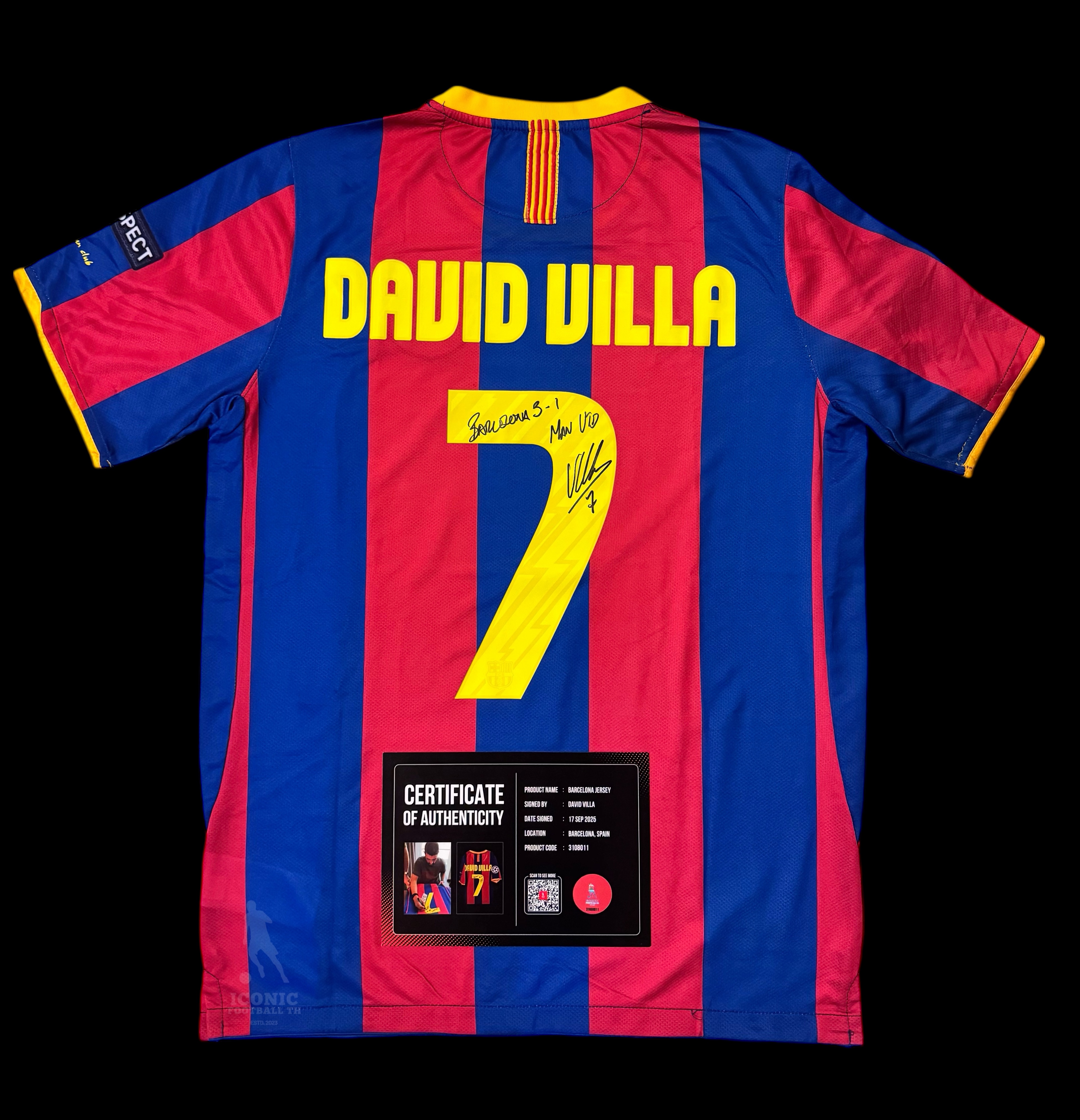 เสื้อ Barcelona Retro Signed by David Villa มาพร้อมข้อความพิเศษ: “Barcelona 3-1 Man UTD"