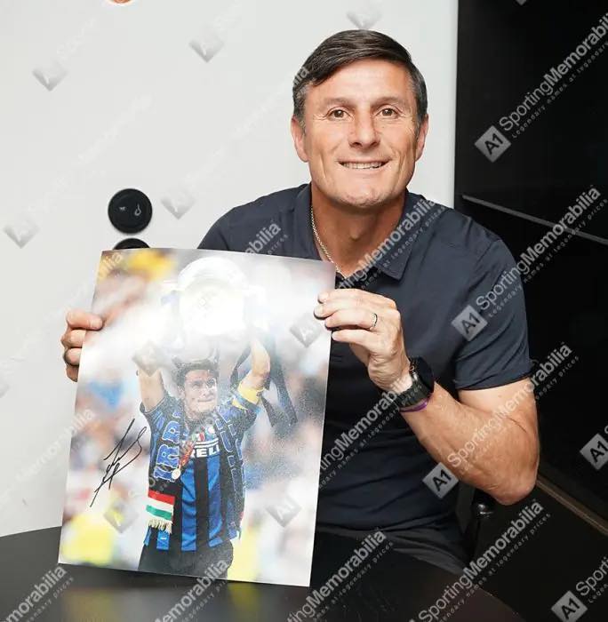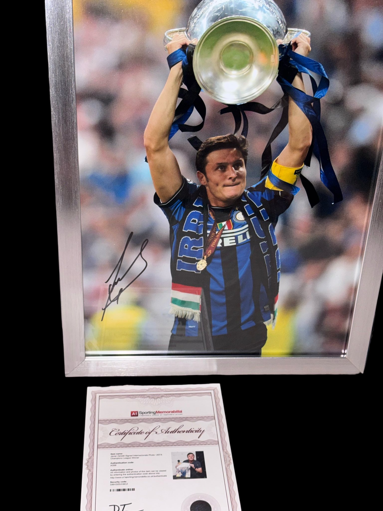 โปสเตอร์ Javier Zanetti UCL Winner เข้ากรอบ พร้อมลายเซ็นสด ใบ coa A1sporting memorabilia