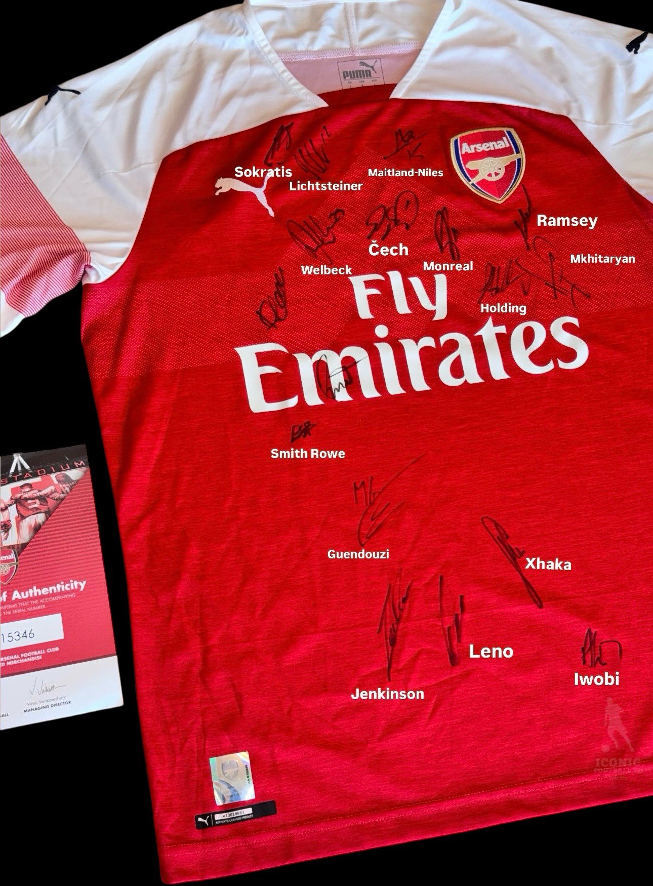 เสื้อ Arsenal official ฤดูกาล 2018/2019 พร้อม ลายเซ็นสดนักเตะชุดใหญ่ ใบ coa Arsenal Club Official