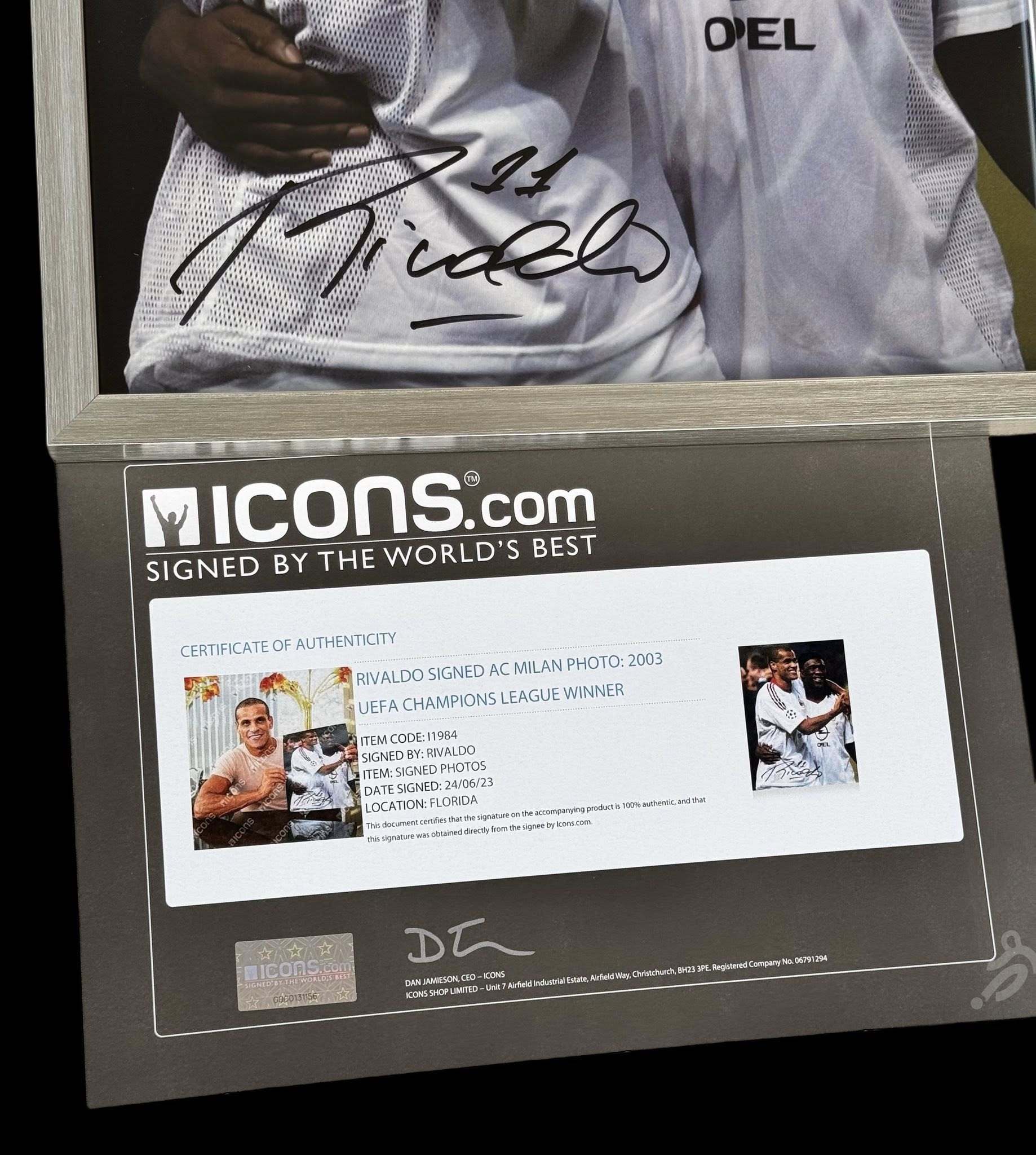 โปสเตอร์ Filippo Inzaghi UCL Winner เข้ากรอบ พร้อมลายเซ็นสด ใบ coa A1sporting memorabilia